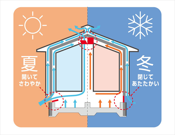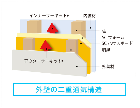 壁内に空気を通して家にこもる熱や湿気を外に排出