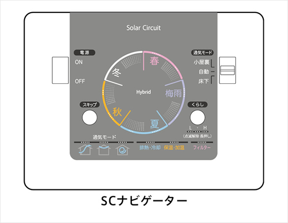 屋外の温度変化を外気温度センサーで感知して効率よい室温調整に適した通気モードに自動で切替え